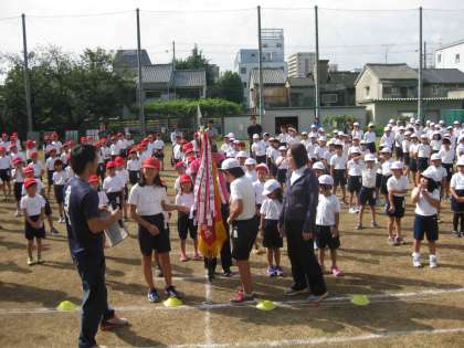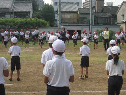今日は全校児童が輪になって踊る、深江小学校恒例の「河内音頭」の練習と、閉会式の練習を行いました。