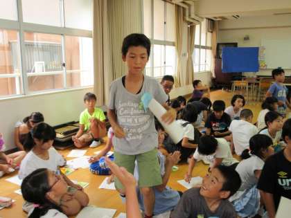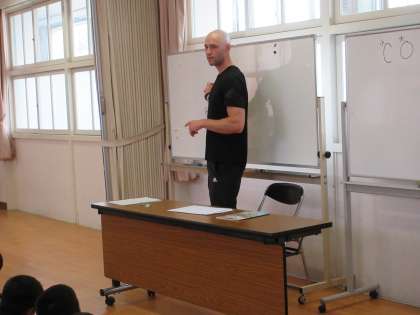本校では5・6年生が毎週水曜日に教育委員会より派遣される外国人講師のC-netによる英語授業を、1年〜4年が月一回の外国人講師のAET(英語指導助手)による英語授業を実施しています。いずれの外国人講師もアメリカの方です。