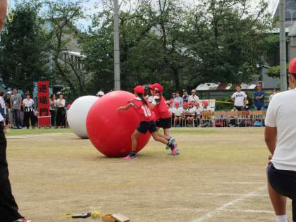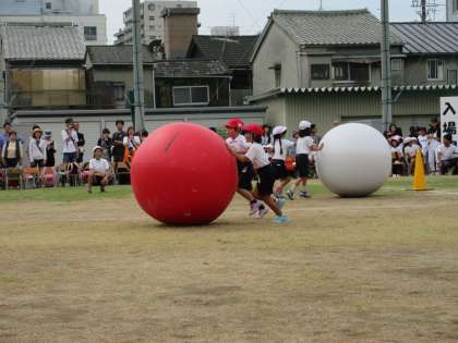 2年生による紅白大玉ころがしです。