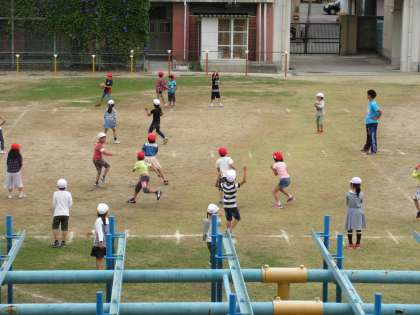 2年生が今はもう運動会のなごりもなくなった運動場で、ドッジボールに取り組んでいます。これから冬場にかけてドッヂボールが校庭狭しと盛んになっていきます。