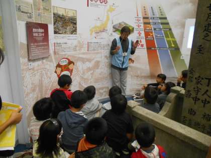 4年生が防災・減災学習のために大阪市の津波・高潮ステーションの見学を行いました。施設の方から説明を聞いて、もっと身近に災害や防災について考えられるようになりました。迫力のある映像も迫ってきて疑似体験を行えました。