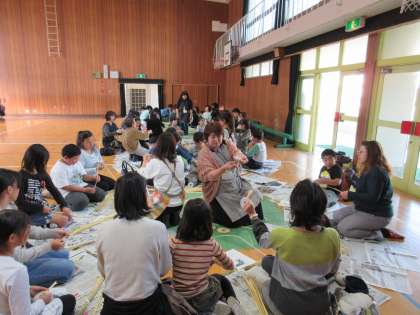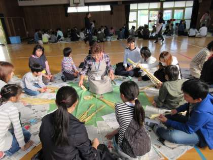 深江菅細工保存会の皆様のご指導のもと4年生が菅細工にチャレンジしました。