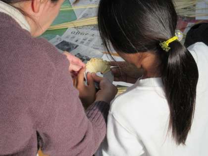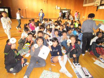 4年生は満面の笑顔です。何かひとつ作ることは大変なことですが、完成した喜びは大きいものです。深江菅細工保存会の皆様ありがとうございました。また、保護者の皆さまもご協力ありがとうございます。