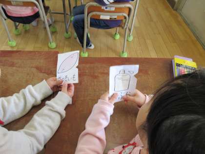 「あか、きいろ、みどり」の3つの栄養素の重要性と、食物をバランスよく食べることの学習をおこなっています。切符に書かれた食物を持って、それぞれの列車に乗り込んでいきます。楽しく栄養について学ぶことができますね。