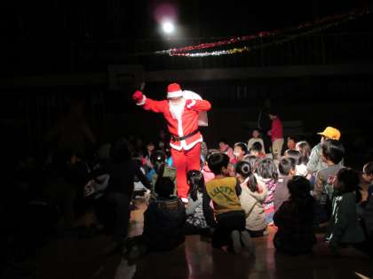 深江青少年指導員協議会と子ども会主催の「クリスマス会」の様子です。毎年、深江の子どたちが楽しみにしている恒例行事です。