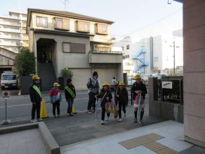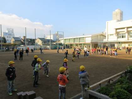 (写真)朝のあいさつ運動、早朝に元気で遊ぶ児童たち