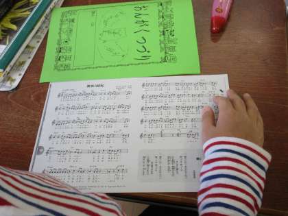 12月7日の音楽鑑賞会に向けて3年生が譜面づくりをおこなっています。なんと低学年はプロの演奏に合せて「勇気100%」を合唱させていただけることになりました。