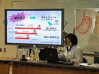 薬の種類や飲み方、体に対する影響について実験などを交えながら教えていただきました。