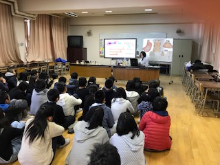 本日の2時間目に学校薬剤師の福井先生に来ていただいて、6年生が薬について授業をしていただきました。