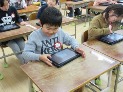 1年生は文部科学省プログラミング教材「プログラミン」を使った学習を行っています。