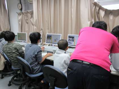 6年生はパソコン教室で、各々が設計した設計図に基づいて、プログラミングを入力しゲームを作成しています。なかなか個性あふれるゲームが出来上がりそうです。