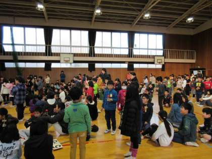 毎週木曜日にある始業時前のふれあい集会では「けん玉」が行われました。低学年と高学年それぞれに課題が与えられました。けん玉活動を通して、集中力や達成感の育成に取り組んでいます。