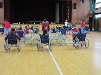 3年生が初めて車いすの扱いや介助についての学習を行いました。ご指導をいただきました、平野リハビリテーションセンターの皆さまありがとうございました。実際に車いすに乗ってみて思いのほかむつかしいことを体験できた3年生たちです。