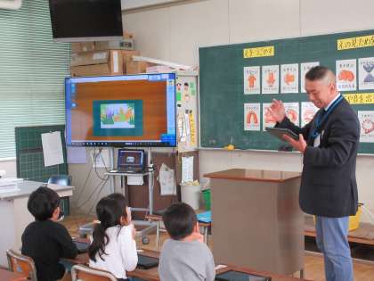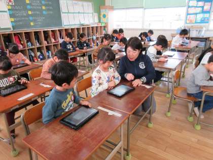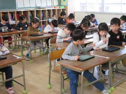 本校では文部科学省の教材「プログラミン」を活用して、1年生がプログラミング学習を進めています。慣れてきた児童もいて、児童間での教えあいも進んできたようです。「習うよりも慣れろ」ですね。担任も積極的にかかわっています。