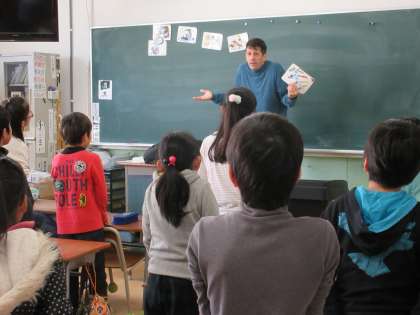 昨日の4年生に続いて、本日は3年生の英語授業です。平成32年度からの「新学習指導要領」における3・4年での外国語活動の導入に向けて、既に本校では今年度より1年から4年まで、外国人英語教師による英語の授業をクラス単位で月1回のペースで実施しています。「習うより慣れろ」で本物の英語に触れる授業を進めています。