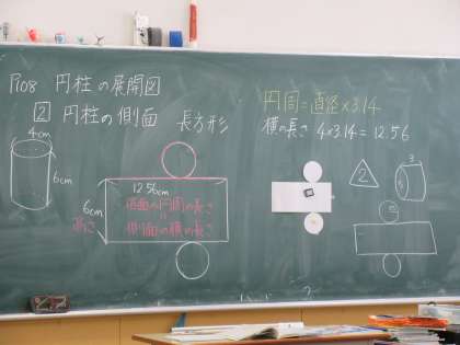 円周率を使って円柱の円周の長さを求め、実際に円柱を作ります。