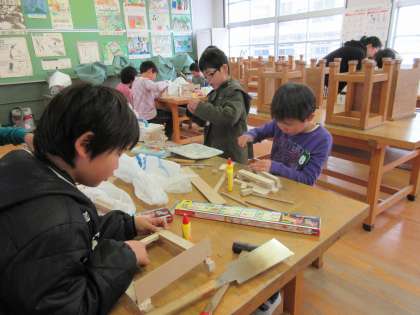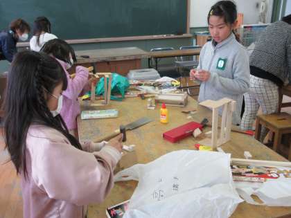 先日より、金づちやのこぎりを使って木工に取り組んでいます。より完成に近づいてきていますが、まだ時間がかかりそうです。
