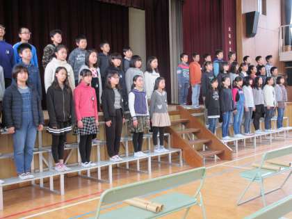 今日は6年生だけでする「卒業式」予行の最終回でした。実際に学校長から卒業証書を授与されて、予行とはいえ緊張の面持ちの6年生たちです。