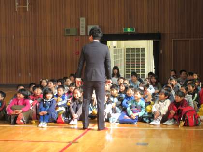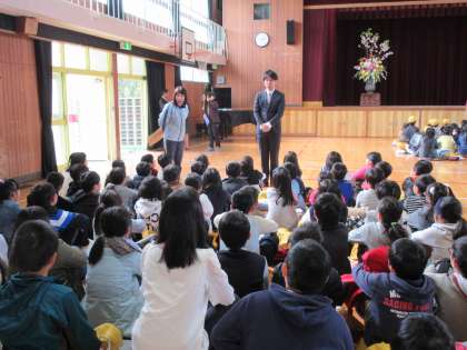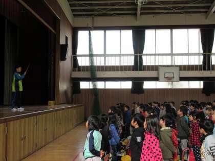 学校長より新学年の担任発表がありました。児童にとっては担任発表はわくわくどきどきの瞬間です。決まった新担任よりお話を聞く児童たちです。