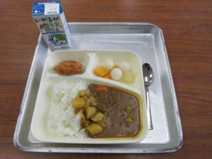 献立:カツカレーライス、フルーツ白玉、米飯・牛乳