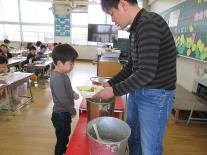 おかわりもあります。しっかり食べて「ごちそうさま」をみんなでしましょう。