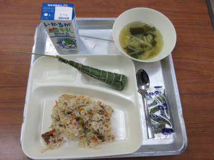 こんだて:牛肉ちらしずし、すまし汁、ちまき、米飯・牛乳