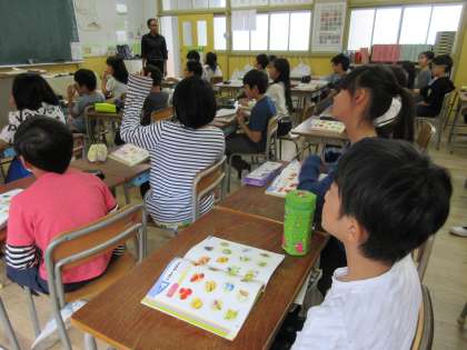 本校では平成32年度からの新学習指導要領の実施に向けて、1年〜6年までの全クラスに外国人講師による英語の授業を行っています。また、週3回のモジュールタイム(15分間)も年間を通じて実施しています。