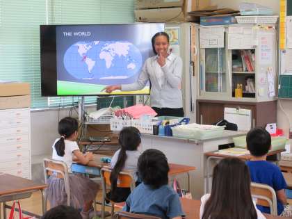 そのあと、児童の質問に丁寧に答えられていました。「習うより慣れろ」で低学年の英語はスタートします。