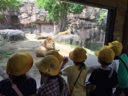 学級ごとに並んで、いろいろな動物を見て回りました。ガラス越しにとても近くで動物の様子がよく見えました。