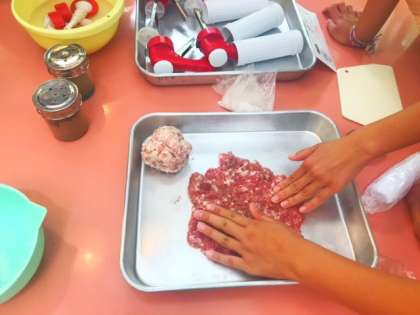 さあ、「ソーセージ作り」に挑戦です。出来上がったソーセージは持って帰りますのでおたのしみに。