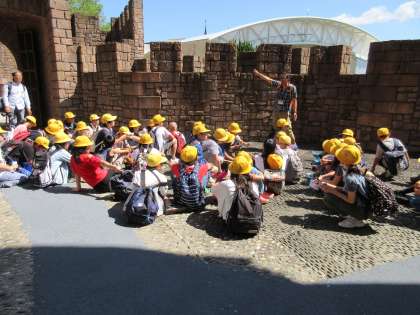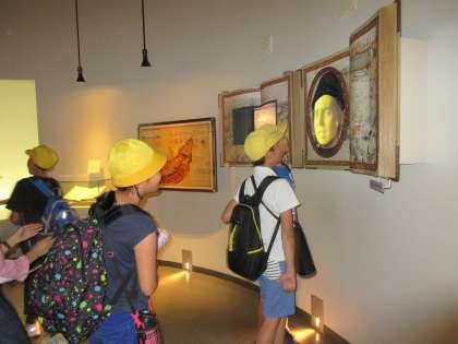 「コロンブス」とご対面、これもハビエル城博物館での様子です。大きな博物館でしたが、速足で一回りした児童たちでした。