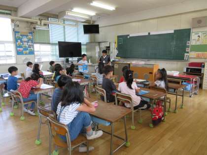 授業の様子と学級の掲示です。「遠足で動物園へ行ったときの楽しそうな様子が描かれています。」