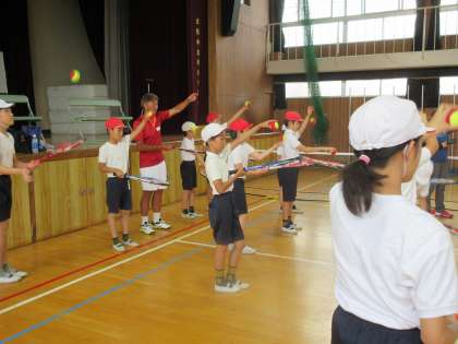 6年生は昨年にも5年生で本授業を経験しており、ある程度様子がわかっているので、楽しんでテニスを行っていました。