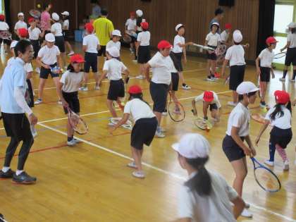 初めてラケットを使ってテニスをしました。みんなかっこいいですね。