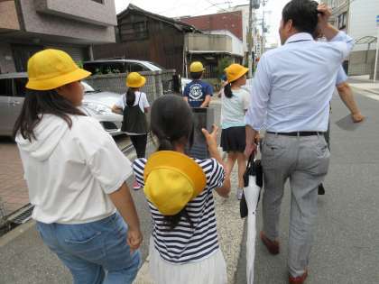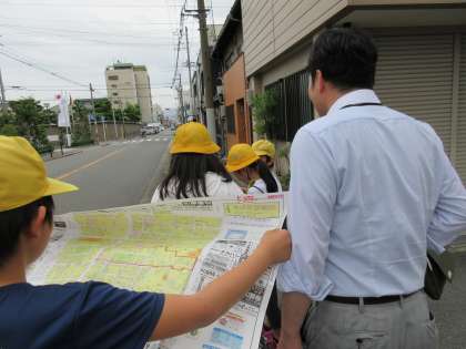 そのあと、実際に通学路を警察官と歩いて、注意をしなければならないところを、地図に書き込んだり、タブレットのカメラに映像を記録して学校に帰りました。