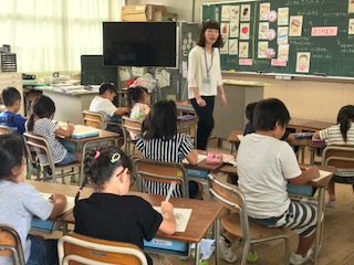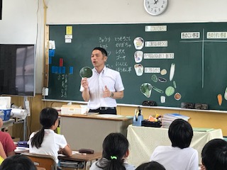 5年生は.「野菜について知ろう。」という内容で東成区の栄養教諭の方に来ていただいて、授業をしていただきました。