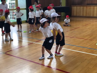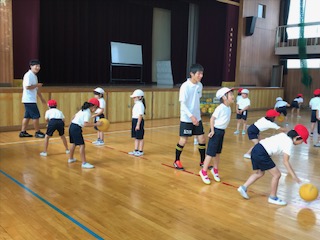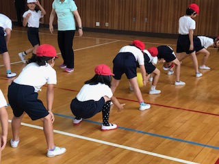 ボールをついたり後ろの人にまわしたりとしっかり体を動かしました。