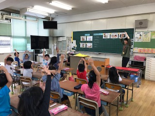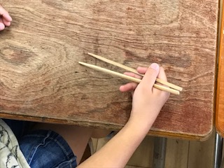 今日は東成区の栄養教諭にきていただいて「はしのもちかた」の指導をしていただきました。