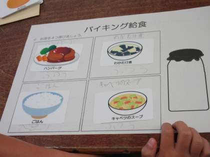 栄養教諭の先生のお話をお聞きしたうえで、それぞれで給食の献立を考えてみました。いかがでしょうか?バランスのとれた献立になっているでしょうか。