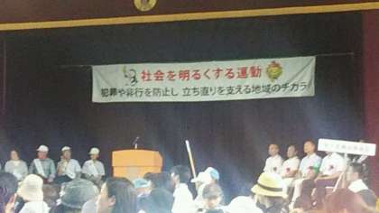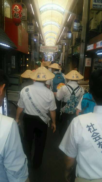 第68回社会を明るくする運動の啓発パレードが梅雨明け前の猛暑の中、今里小学校から深江小学校までおこなわれました。戦後間もなく始まった運動ですが、青少年の健全育成を目的に東成地区保護司会、東成警察署、東成区役所、学校や関係諸機関の協力で毎年行われています。