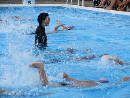 トップアスリート「夢・授業」で、オリンピック2大会出場の千葉すず先生が本校の児童の指導に来られました。3・4年生はオリンピアンの模範水泳を目の当たりにして驚いた様子でした。