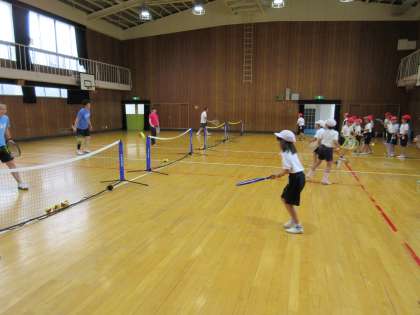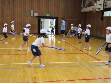 関西テニス協会(ノアインドアテニスクラブ深江橋)のご協力で、3年生がテニス体験授業を行いました。初めてのテニス体験でしたが、とても元気よくテニスに親しむことができました。テニスは仲間と協力してするスポーツです。相手のことを考えないとラリーは続きませんし、練習にならないと教えていただきました。そして、ラリーが続いたらお互いを讃えることも忘れないようにしましょう。(学校長)