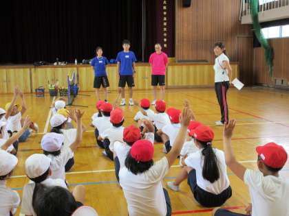 仲間と協力してラリーを続けることが一番の練習です。相手のとりやすいところにボールを出します。人間関係(コミュニケーション)と同じですね。(学校長)