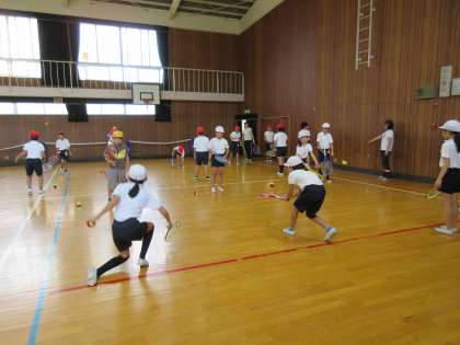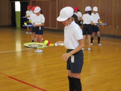 先週行った3年生に引き続いて4年生が、関西テニス協会(ノアインドアテニスステージ深江橋校)様のご協力で、テニス体験をおこないました。