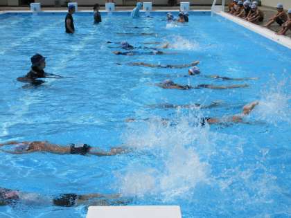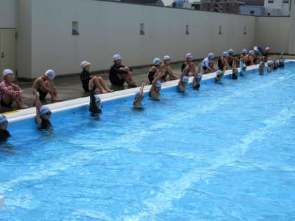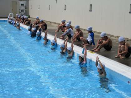 けのびからバタ足へと移行しています。みんな思いのほかよく泳げています。