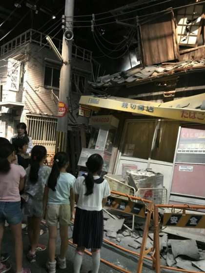 詳しくお話を聞いて、地震で被害を受けた建物の展示などを見て回りました。