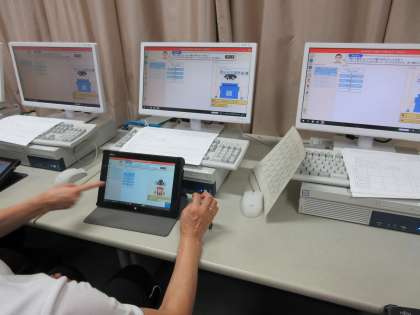 スズキ教育ソフト(株)様のご協力を得て、教員対象にプログラミング研修を行いました。