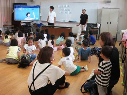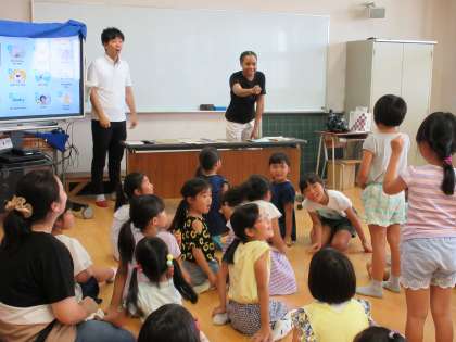 英語のじゃんけんゲームから始まり、入室のあいさつや、数字の発音など初歩の英会話をしていただきました。親子での参加もOKです。