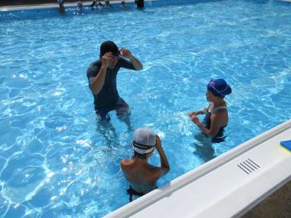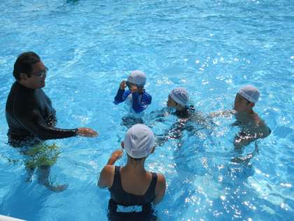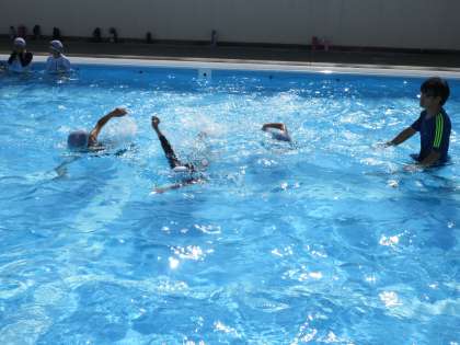 25m、50mそれ以上泳ぎたい児童(高学年)を対象に、特別練習をおこなっています。少人数の指導により、めきめきと泳力をつけています。