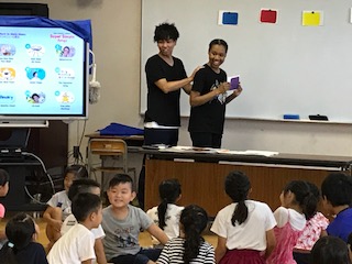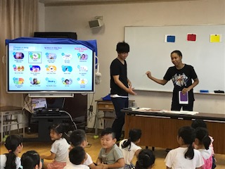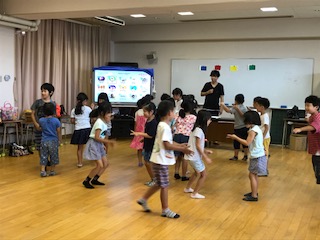 c-netのタマラ先生の英語活動の第2回目です。チームでジャンケンをして、つながっていくゲームをしています。